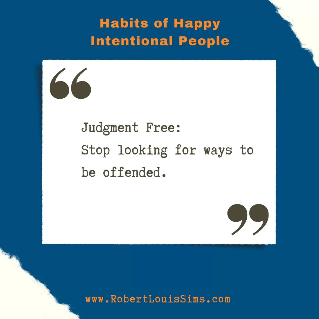 One of the habits of happy and intentional people is what I call the habit of being judgment free. Imagine, just for a moment, going through a full day without judging what others say and do. Think about how relaxed and content you would be just by practicing this simple habit of acknowledging the world around you, free of judgment.